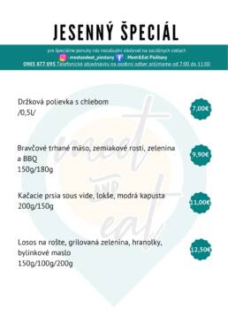 V našej reštaurácii kombinujeme najnovšie trendy modernej kuchyne, inovatívne zariadenia a technológie s tradičnou kuchyňou a štýlom varenia. Tradícia a inovácie idú ruka v ruke – táto idea tiež utvára našu filozofiu varenia a prístupu k zákazníkom. V meniacom sa jedálnom lístku denne podávame jedlá slovenskej aj svetovej kuchyne. Reštaurácia je zameraná na moderné myšlienky a hosťom sa snažíme ponúknuť nielen skvelé jedlá ale aj pocity.